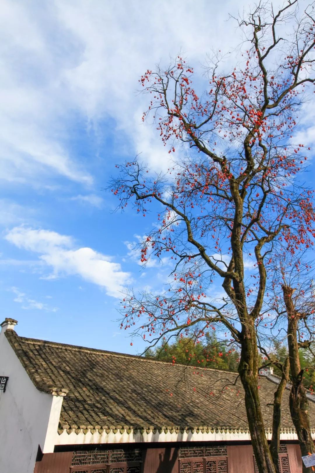 这里家家户户都种着柿子树,红红的柿子,配上青灰色的老房子,别有雅致与韵味。