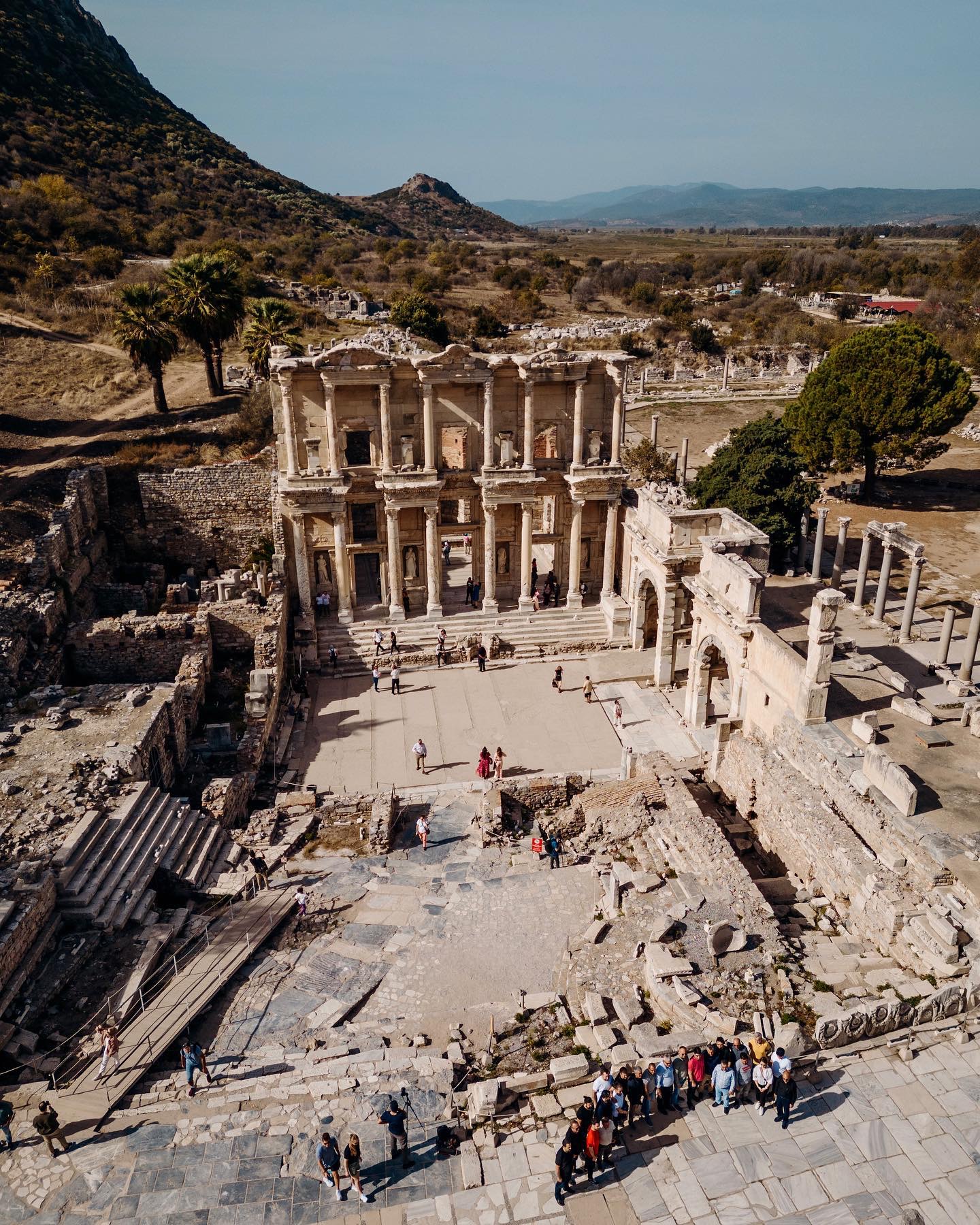 早餐后出发前往位于库萨达斯周边的著名古城遗址,是地中海东部保存的最好的古典城市【以弗所古城】曾为古罗马帝国的重要城市,现遗留下来的有容纳二万五千人的露天剧场,大型市集、浴尝神殿、庙宇等,气势恢宏,完好的遗址不禁让人兴叹。随后游览有小番红花城之称的奥斯曼小镇【希林捷】,漫步于村庄的后街小巷之中,依然可以看见希腊风格的白色房屋,蓝色窗户和地上被磨得光滑的古老的青石板路。在老旧的门窗和色彩斑斓的石头墙上涂满了岁月的痕迹。小镇比较出名的就是水果酒,沿着小路有很多小酒庄,客人可以品尝不同口味的水果酒,可以带回家做个留念。