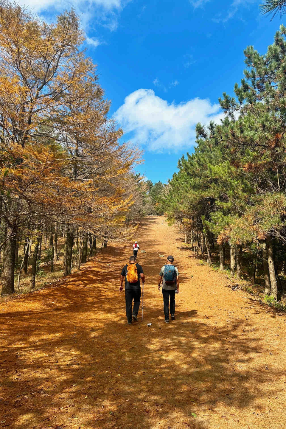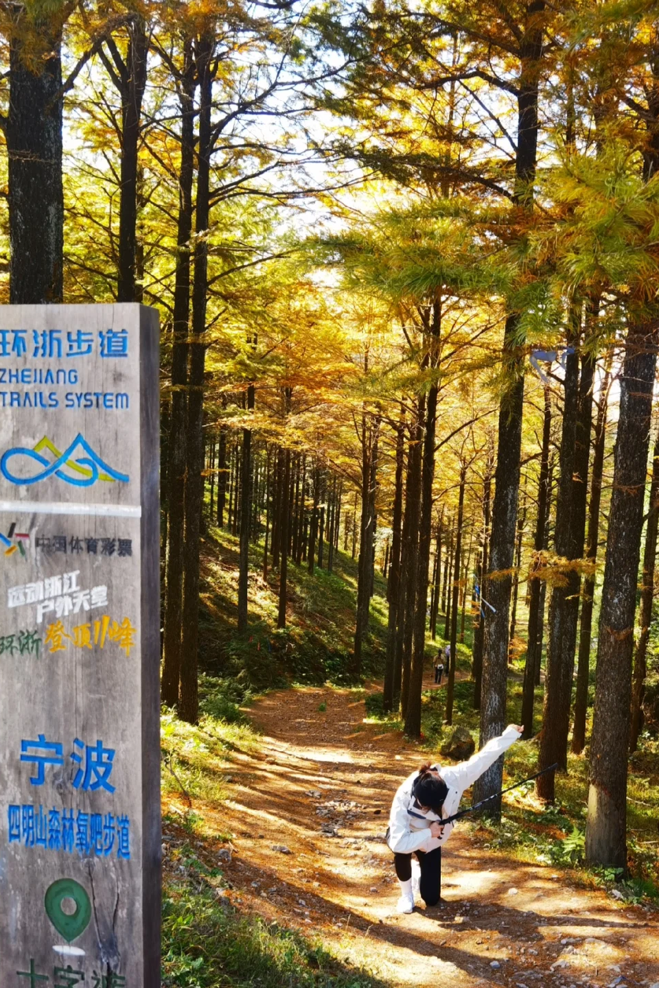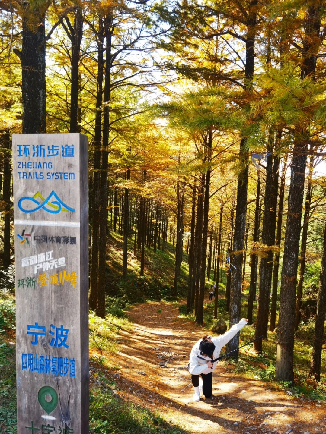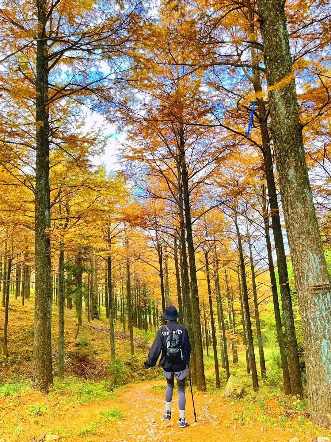 金钱松叶子落满古道,徒步爱好者对这样的黄金大道很难有抵抗力。摆几个好看的姿势,拍几张照,留住秋天的自己。