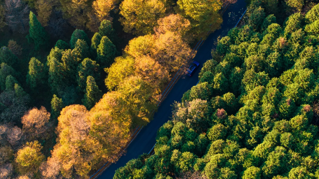 小路婉转,金钱松叶铺路
