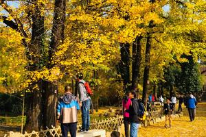 你可以选择在秋日的晌午之后,漫步于满是黄色的银杏小径,感受特有的山野气息,脚下踩着松软的银杏叶和枫叶,发出沙沙的声响,伴着叮叮咚咚的泉水声,像是在奏响一曲美妙轻快的秋日恋歌,微微抬起头便有阳光透过枝头温和地洒落在你满是惬意的脸庞,不用刻意修饰,画面温馨而美好,宛若一幅秋天的童话。