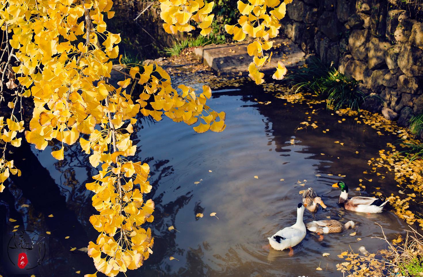 下午沿着竹林前进,翻阅竹林,越过山顶顺着小路即可抵达一条机耕路。远瞭杨家村,沿着道路行走十分钟出现一片巨大的银杏林,金黄笼罩的村庄,就是杨家村了。行摄金黄世界的你格外迷人,景美,人更美。村边的溪涧,芦苇飘荡。自由自在游走在村落中,不停得留影,地上已经是满村尽戴黄金甲了,捡起一片银杏叶,拾起一段往事。也可带上地垫,在金色的树荫下打打牌,狼人杀……适时,把大家从沉醉的世界中唤醒,乘车返回杭州了,在无限的沉思中离着金黄的世界越来越远。