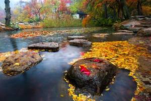 1. 苏州天平山是国内三大赏枫胜地之一,入秋枫叶由青次第变为黄、橙、红、紫,称五彩枫,亦有呈浅绛、金黄、桔黄、橙红等色。深秋登中白云望枫台,纵目眺望,似珊瑚灼海,红霞万丈。