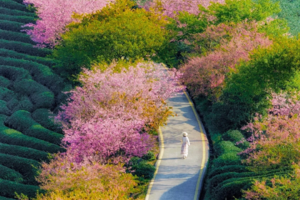 永福樱花是国内面积最广(5万多亩的茶园里),