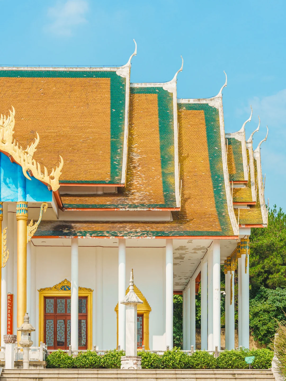 下午 适时离开前往【报恩禅寺】,在溧阳发现了宝藏寺庙,金顶白墙的泰式建筑风格太特别了,仿佛瞬间穿越到清迈,阳光下的佛塔闪着温柔金光,随手拍都是高级感大片。
