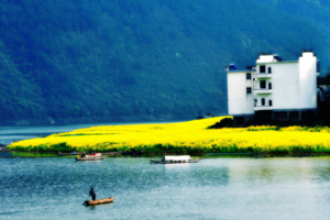 新安江,发源于安徽的休宁,东流进入浙江省境内后,汇入杭州淳安和建德境内的千岛湖。千岛湖的美丽自不言说,它的上游在安徽黄山市歙县,由练江、渐江在浦口汇合后称“新安江”。阳春三月,这一路盛开的油菜花、桃花、梨花以及江边的青青柳树与徽派古民居构成一幅优美的山水图画,被雅称为新安江山水画廊。新安江两岸,沿青石板走一路,时见黑瓦白墙的古民居掩映在翠竹碧树之中,两岸徽派古民居点缀在青山绿水之间,素有“东方多瑙河之称”的新安江穿行而过。一年四季,景色