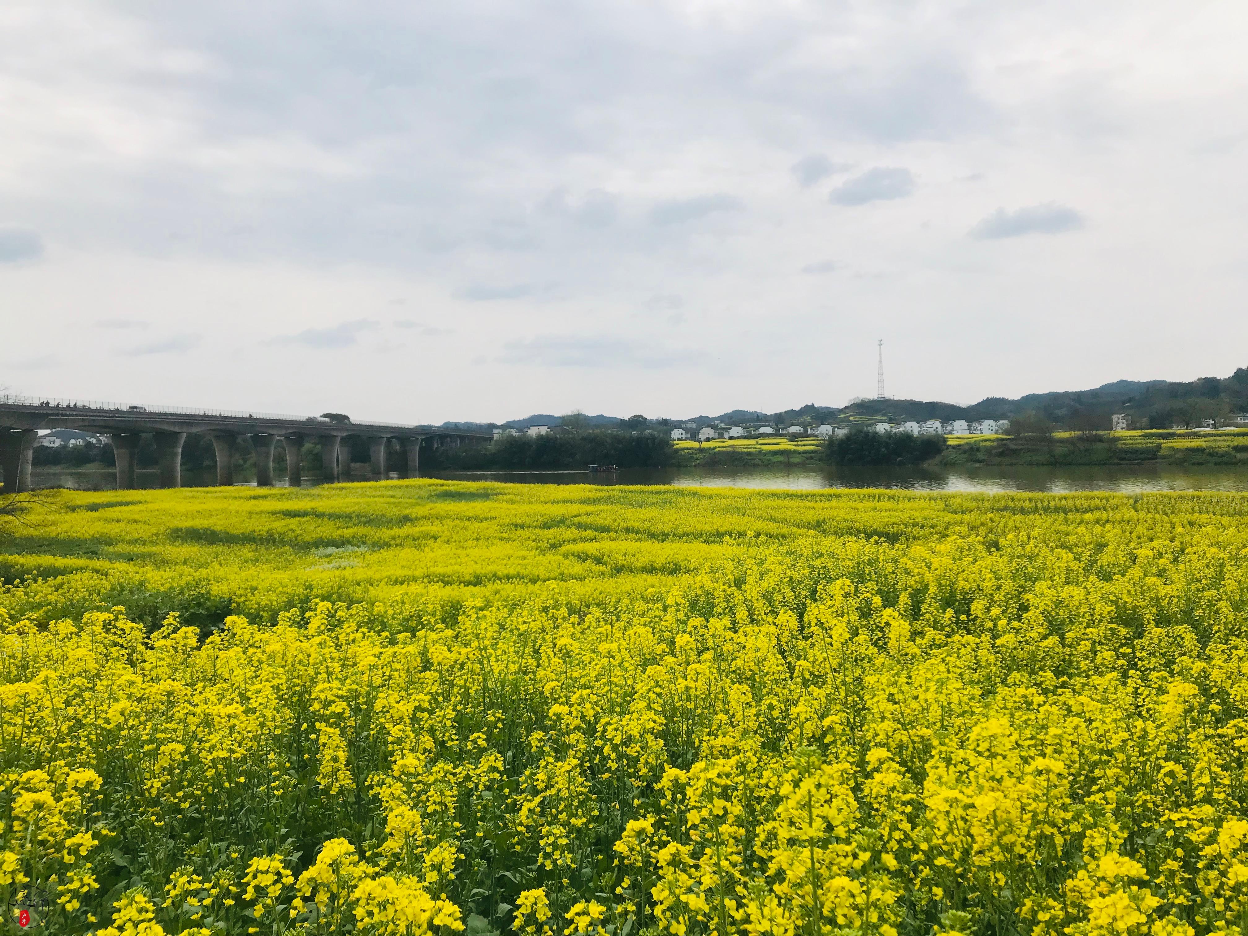 从南源口到雄村全程10公里左右,平路无起伏,一路沿着江边行走,穿行在菜花之中,边走边赏两岸古民居与山水交映景色,心旷神怡。沿途还要再过一个渡口。沿途风景秀丽,我们走不快,需要不停pose摄影,翻过一个小坡,我们走上雄村大桥,俯瞰新安江两岸无边的黄色,令人陶醉不已。