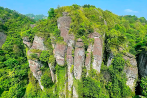 新昌百里丹霞地貌的精彩一段,悬崖、绝壁、山峰、奇石是这里的主要景观,巧夺天工的峭壁奇石,确有一种仙境之美。